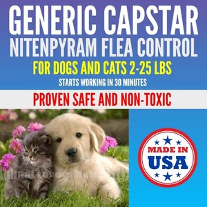 This medication is essential to break the flea life cycle and stop the flea problem. If you need a month long lasting Flea Control. We offer Nitenpyram the 24 lasting Flea Killer product for both small 2 to 25 pound and larger 25 to 125 pound treatment sizes for dogs and cat.